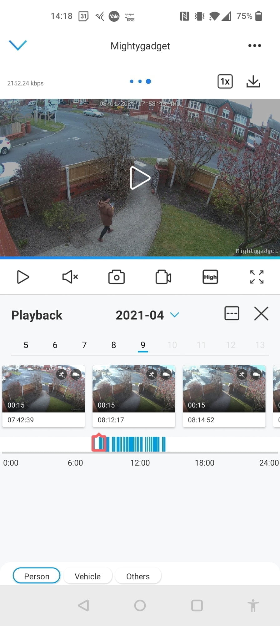 Similarly, night time footage works well. While this doesn’t use a Sony Starvis sensor when the spotlight activates, the camera switches to colour. The image pixelates a little as it switches to colour and back again, but less so than other cameras I have used.