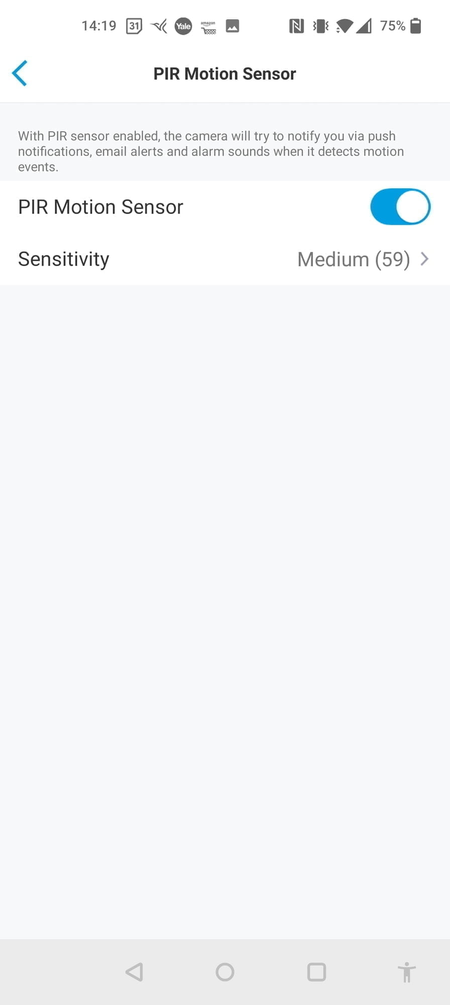 Unlike the other cameras, there appears to be no option for zone motion sensing, so you just set the PIR sensitivity. However, this doesn’t seem to have too much of a negative impact on performance as the smart detection filters out most of the unwanted notifications/recordings for you.