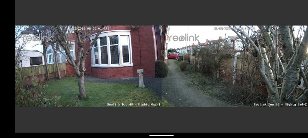 Just like the other Duo cameras, this creates two separate image streams. It is the app that joins the images together by placing them side by side when in landscape. The join isn’t perfectly aligned but I don’t see this as a problem. You also have different brightness levels on each image. This is unavoidable due to the cameras facing different directions.