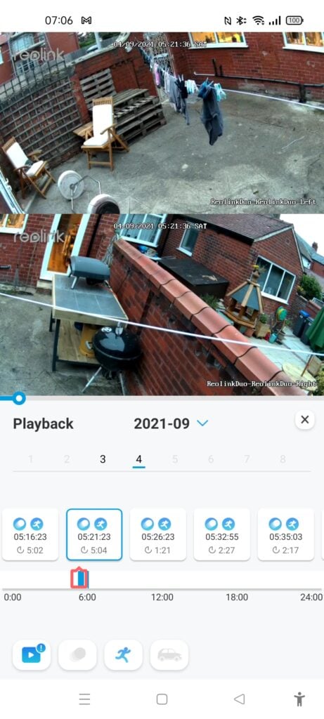When you load the feed in portrait mode in the stiched mode, the two images will display above and below each other. Switching to landscape will place them side by side, giving you an ultra-wide view of your property. The alignment of the cameras isn’t 100% perfect, but it is close.