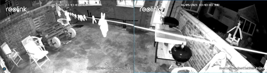 With the nighttime recording, the spotlight will switch on when it detects motion. In my sample footage, I haven’t set up motion zones so it triggers passing cars quite frequently. This highlights a small issue with the Reolink colour night vision system, a car passing by can almost leave the field of view by the time the spotlight is on, and the video is in colour. Not a massive issue unless you have a particular desire to record fast-moving traffic.
