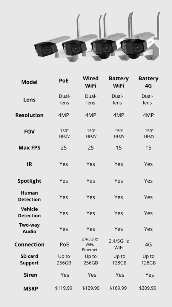 Reolink Duo PoE, WiFi, Battery WiFi and Battery 4G Comparison & Prices