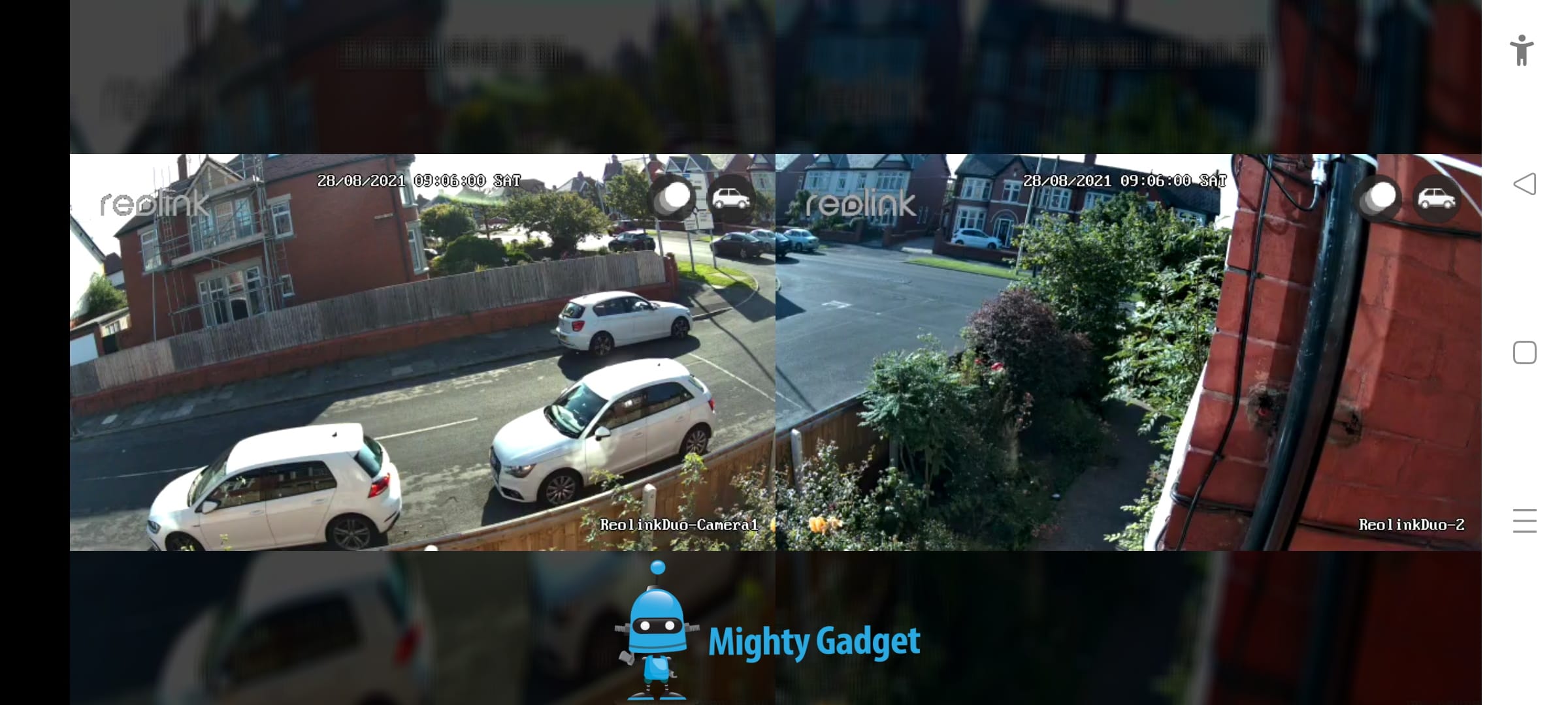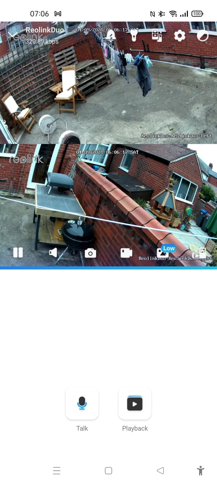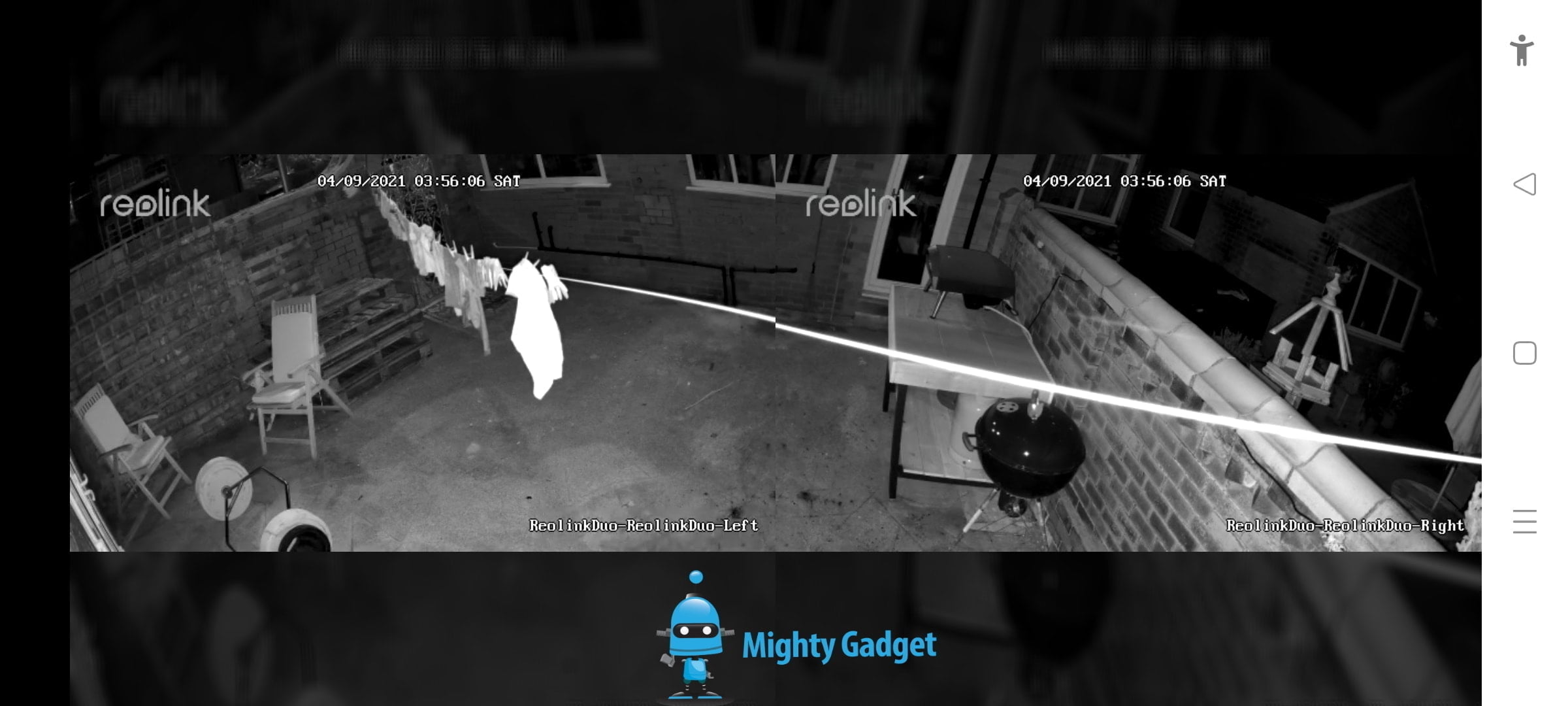 When you load the feed in portrait mode in the stiched mode, the two images will display above and below each other. Switching to landscape will place them side by side, giving you an ultra-wide view of your property. The alignment of the cameras isn’t 100% perfect, but it is close.