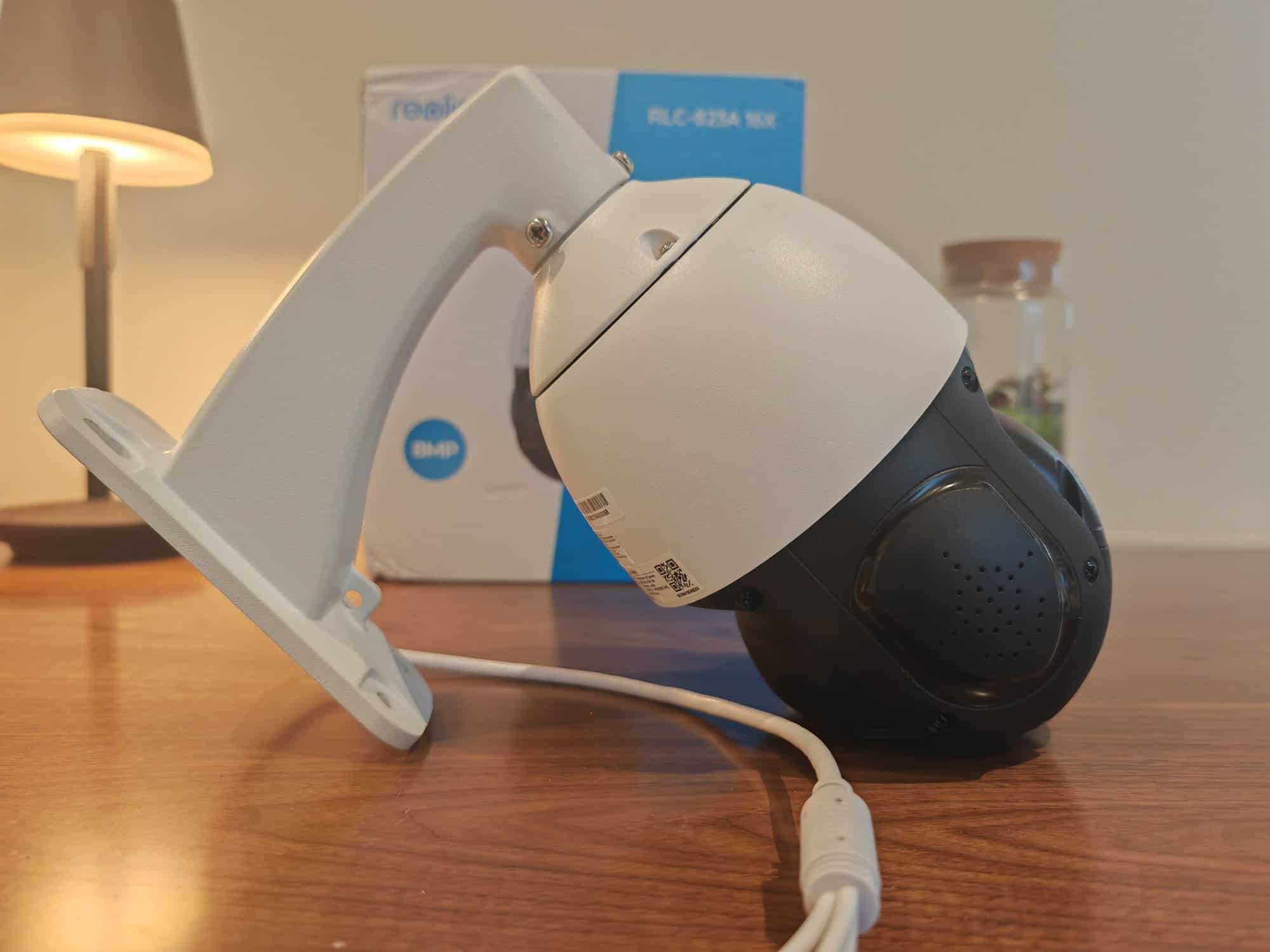 The bracket for the camera is metal, whereas other PTZ cameras often use plastic brackets. This is then separate from the camera, and you run the cable inside the mount with them popping out the base of the mount.