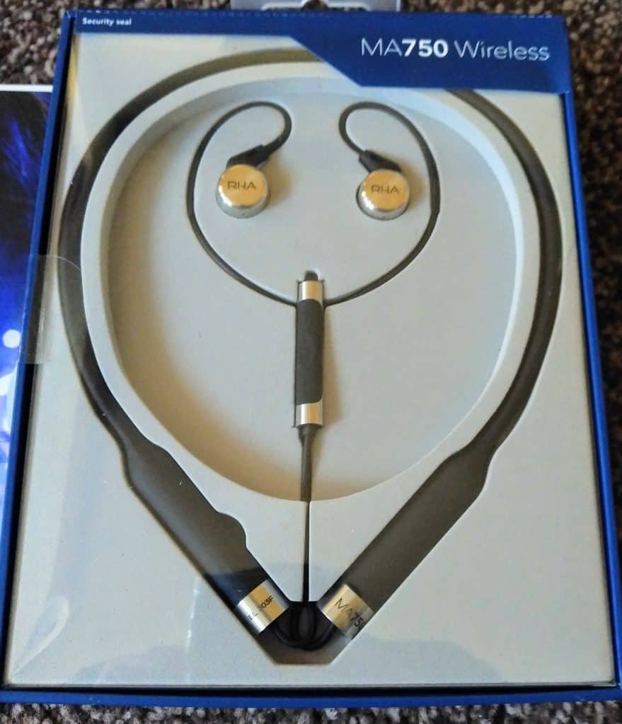 The RHA MA750 earphones are quite different from many on the market; they buck the trend of being completely wireless like the Airpods or Bragi. Instead, they have gone the other direction and not only is there a cable running between the two earphones but it is a large flexible rubber neckband with the thin earphone cables popping out the end and then wrapping around your ears.