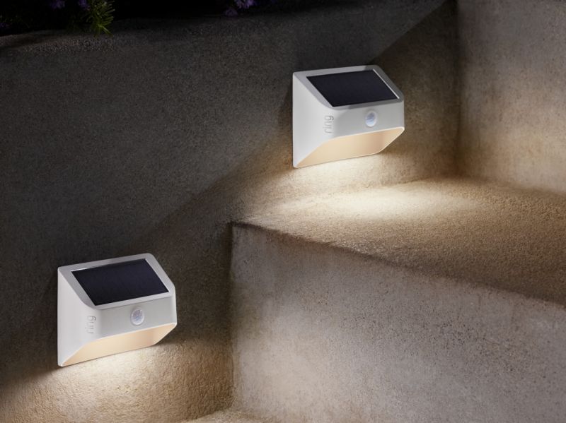 Complimenting the outdoor security cameras, Ring is releasing three new solar lighting products for yards, including a solar floodlight, solar steplight and solar path lights.