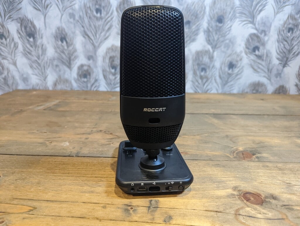 The Roccat Torch has a bit of an unusual physical set-up. There are three USB-C ports, one goes to your computer, but then you connect the base with the microphone with a second short cable.