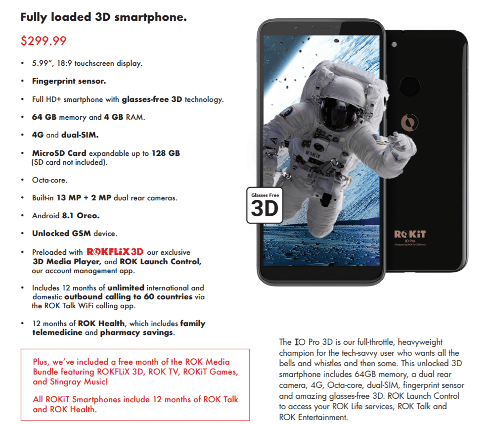 It is the display that is the stand out feature of this phone. Rather than opting for popular options such as high screen to body ratios, notches or pop up cameras, Rokit choose to use a 3D screen.