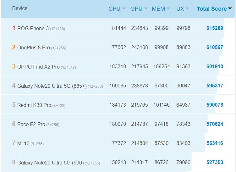 - Qualcomm Snapdragon 865+: Adreno 650