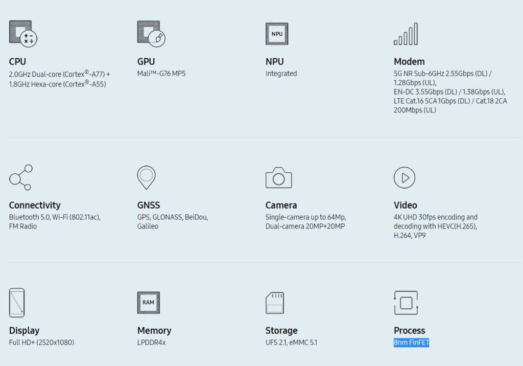 However, camera, video and display specs differ with the Exynos 990 being able to go up to WQHD+ (3360×1440) on the display then a single camera up to 108MP and 4K UHD 120fps encoding and decoding