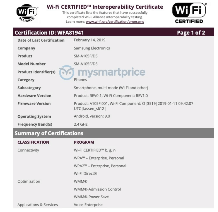 Samsung Galaxy A10 Specifications