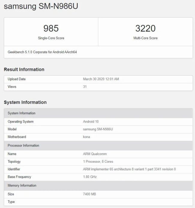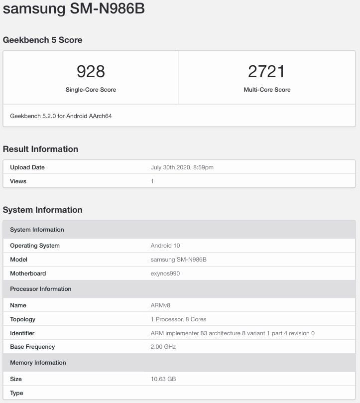 Unfortunately, the rumour appears to be true with a recent listing of the Samsung SM-N986B on GeekBench, which is expected to be the Galaxy Note 20 Ultra.