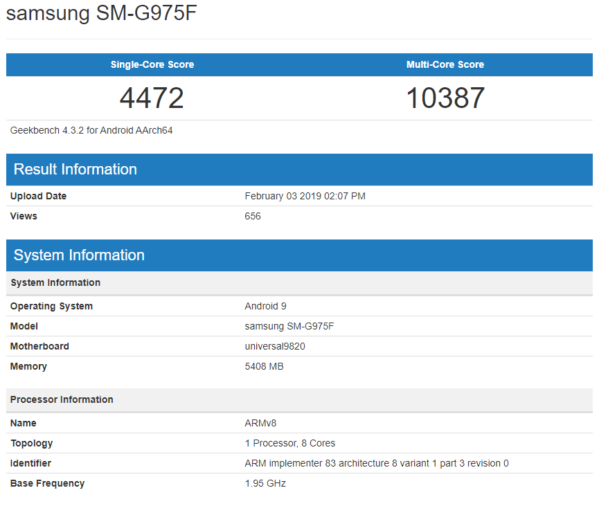 We know for certain that it will feature the Exynos 9820 chipset (at least in certain markets). The chip scores 10,387 points in multi-core and 4,472 points in GeekBench’s single-core tests based on the most recent leaks though some earlier leaks were less positive. This puts the phone slightly behind the iPhone XS Max with its A12 chipset.
