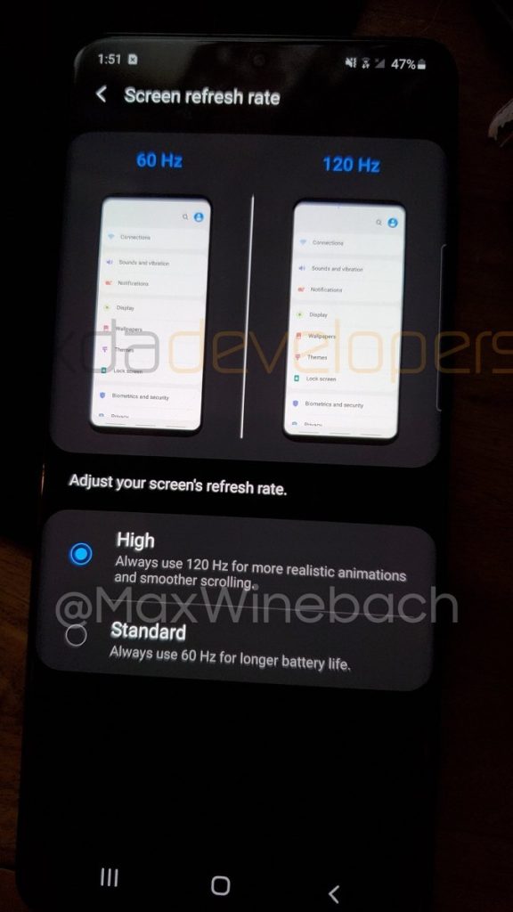 The latest leak from Max Weinbach of XDA Developers confirms that the phone does in fact have 120Hz but it is only possible to use it at FHD+ resolution rather than the maximum WQHD+ resolution.