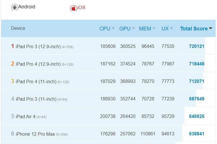 However, a quick look over at the official results on Antutu shows that the iPhone 12 Pro Max (6+256) scores 638841, making the Apple score 0.7% higher than the Samsung.