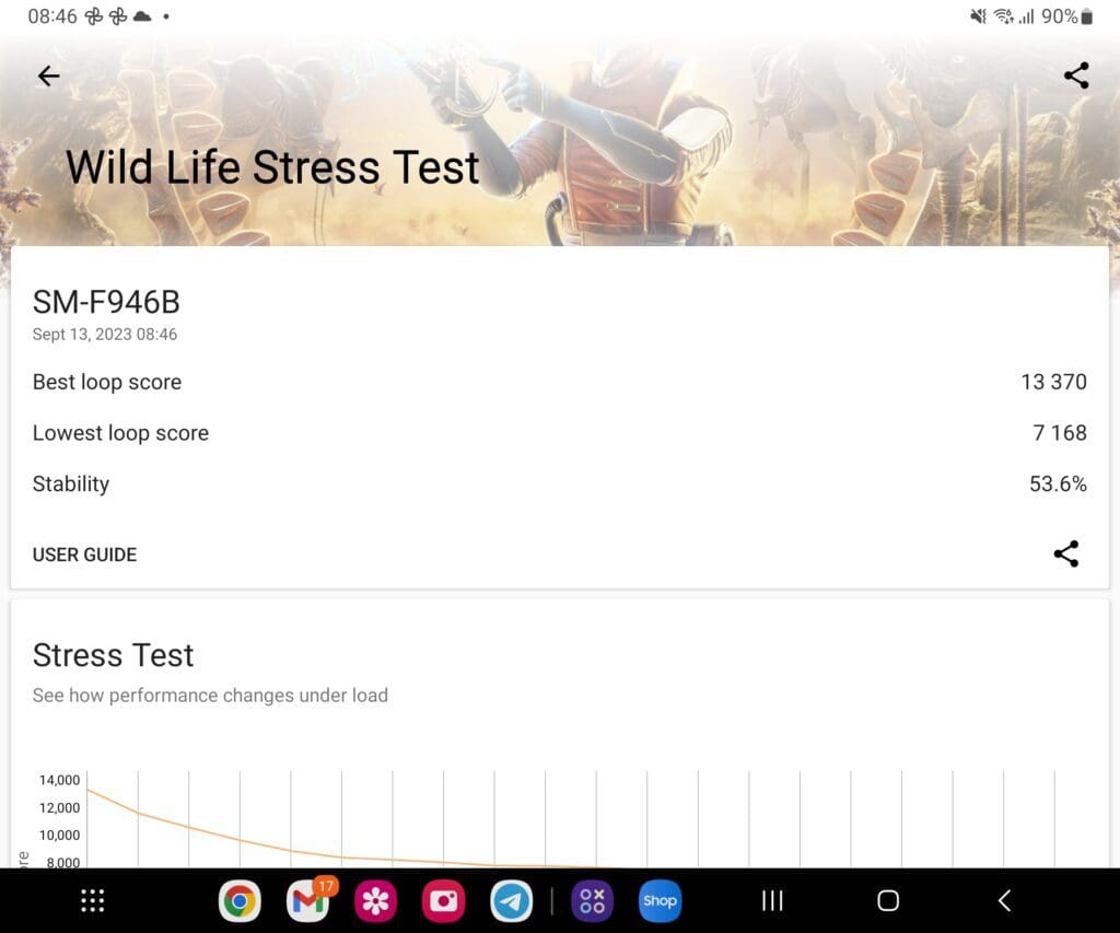 Out of curiosity, I ran the test on both the internal display and the outer. With the outer display, the best loop score was even higher, but so was the thermal throttling. I guess this makes sense, as there will be less heat dissipation with the phone folded.