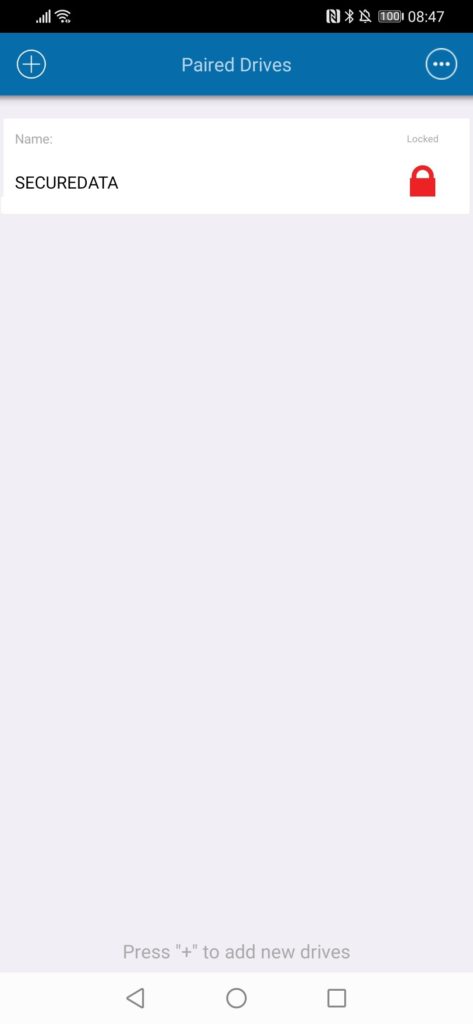 Once you have downloaded the app, when you plug the drive in the app will show the drive being connected and encrypted. When you click on it you will need to use the factory default password of 11223344. With the drive unlocked you can set it up how you want.