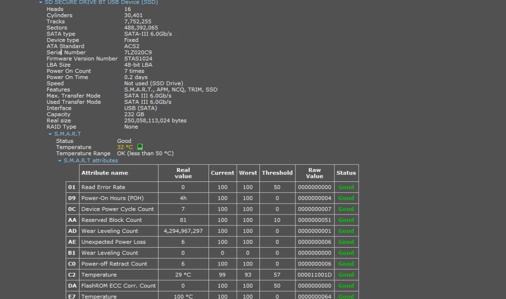 With this being an SSD, it offers superior performance than the more affordable HDD models. It looks like the drive used inside is a Seagate BarraCuda SSD based on the firmware of the drive. This should be rated at: