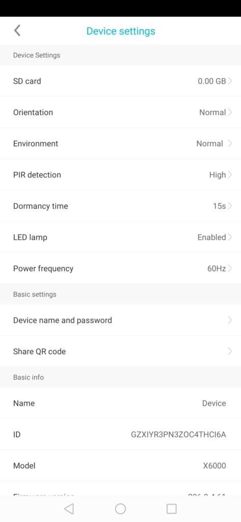 With the camera set up, you can tweak the various settings, motion detection can be disabled, set to low, medium or high. There is a setting for dormancy time, which has no explanation but I suspect this is the re-trigger time so avoid unnecessary notifications and recordings.