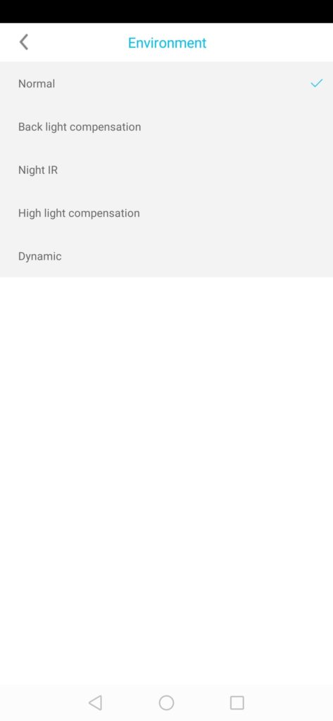 You also have the option to set the environment, which includes normal, backlight compensation, night IR, and dynamic. These will adjust the video settings to improve picture quality.