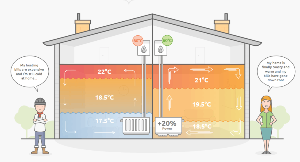 SpeedComfort, a radiator fan, claims to improve the radiator heating power by 20% reducing the warm-up time by 50% and reducing bills by 22%.