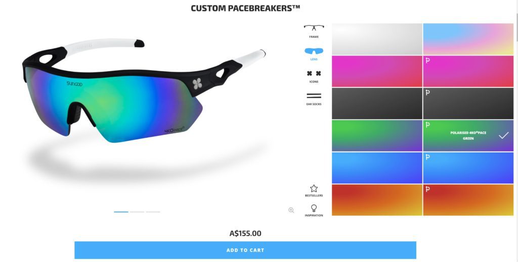 Whatever style you choose you can customise multiple aspects of the glasses. With the Pacebreakers there are options for frame, lens, the icons and ear socks.