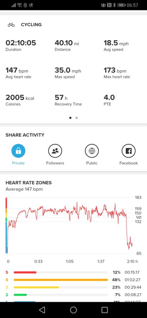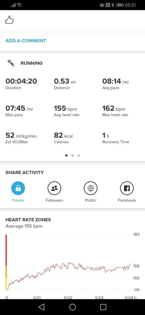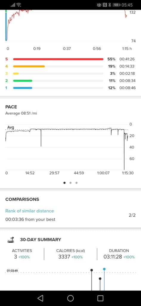 In all the comparisons I make, the Garmin is paired with a heart rate monitor, unless otherwise stated. I have been quite critical of the accuracy of watches wrist-based HRM in the past, over the years I have learned this is just the way wrist HRM is, it is fundamentally flawed due to the location. Sometimes it works fine, often it can be shocking, my Garmin is particularly bad on bike rides and the indoor rowing machine. So while some of these results may not appear too accurate, it is not much different than any other watch I have used.