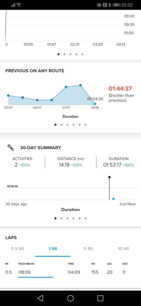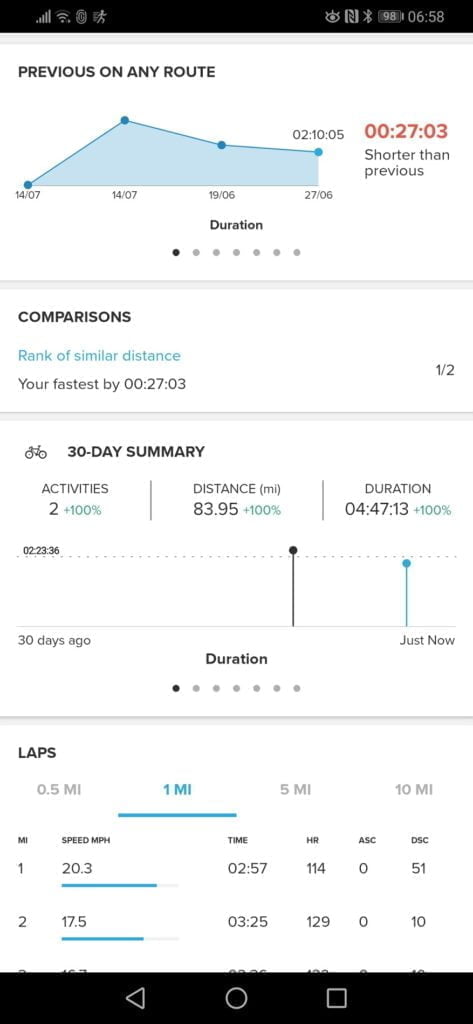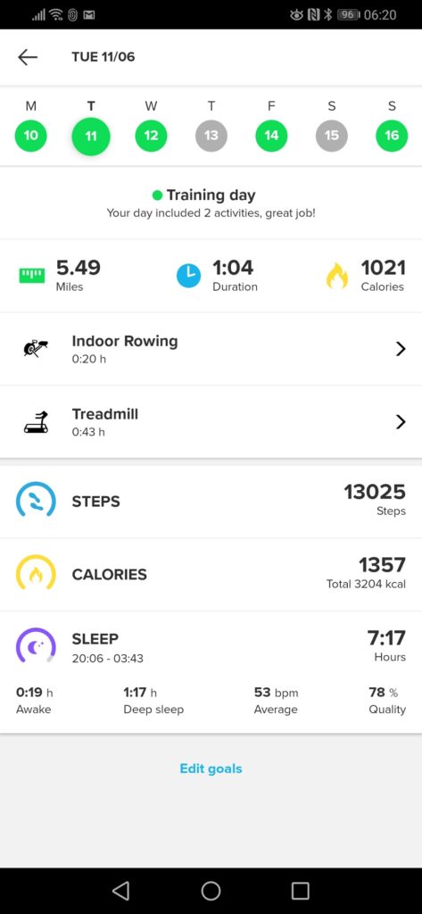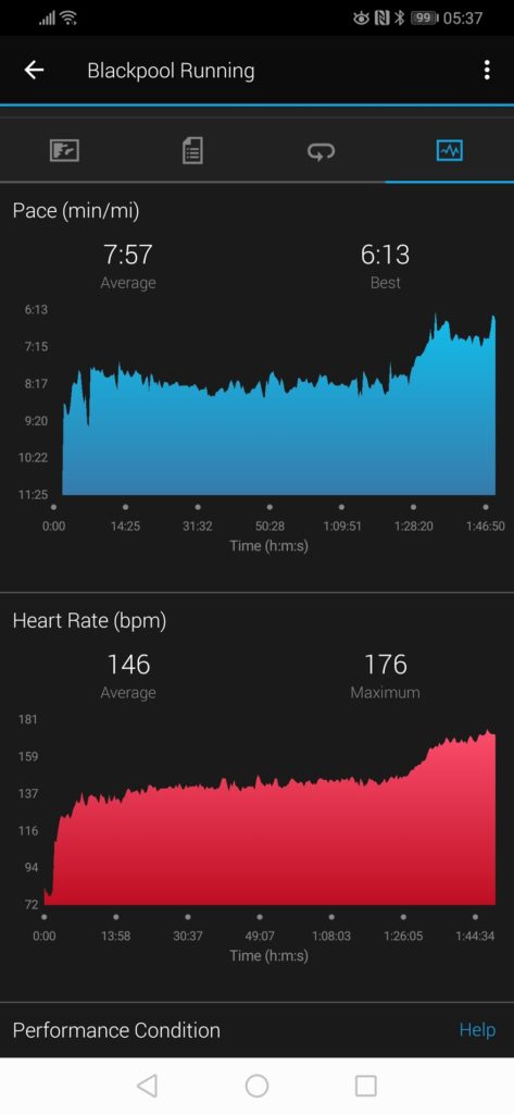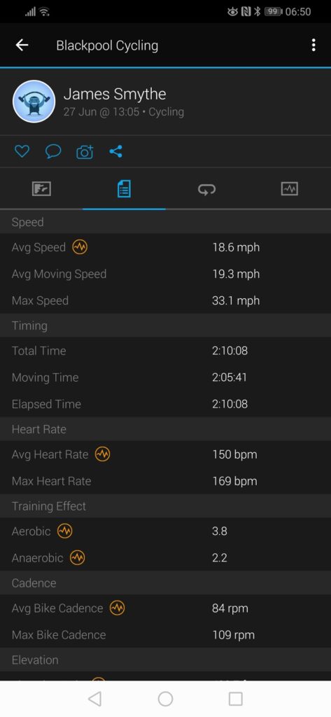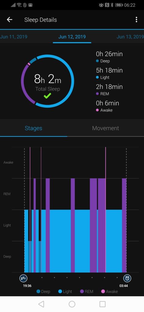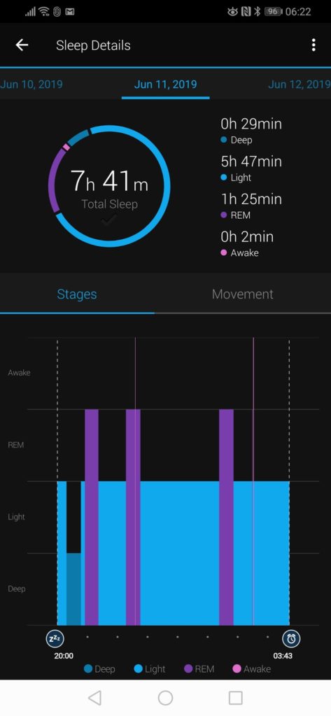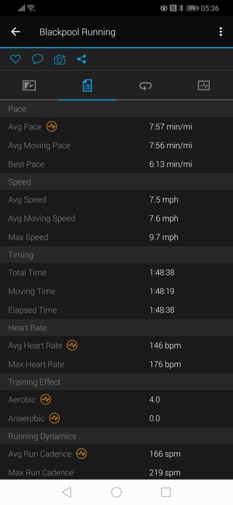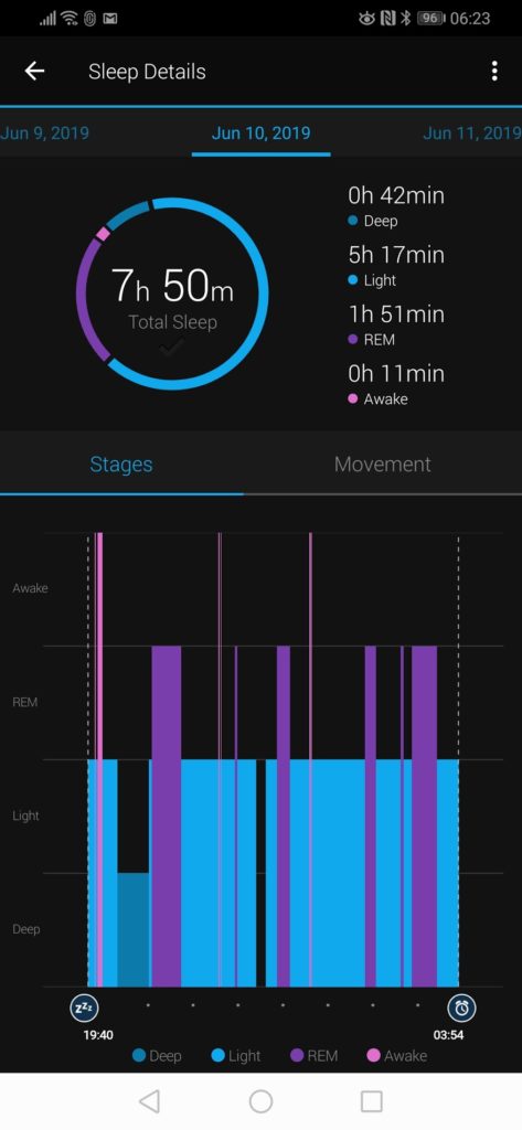 Before moving onto the activity aspects I thought I would include some of the sleep tracking features. This is another metric that is difficult to track accurately, and again, my Garmin isn’t particularly good at it. Annoyingly on the comparison days Garmin has done better than normal, but it is not uncommon for it to think I have had 10 hours sleep.