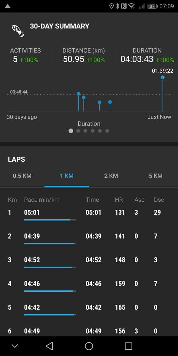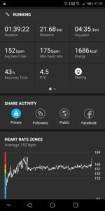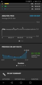 One problem I did have with this mode was when syncing to Strava via Movescout it detected several personal bests which did not occur, such as best 400m and best 5k. So, I would have a very fast 1km segment followed by a very slow one. During the run itself, you don’t get accurate mile markers, as it only updates every 60 seconds. These issues were inevitable due to the way the watch works in this mode, so I would only use the endurance or ultra-modes if you really need to.