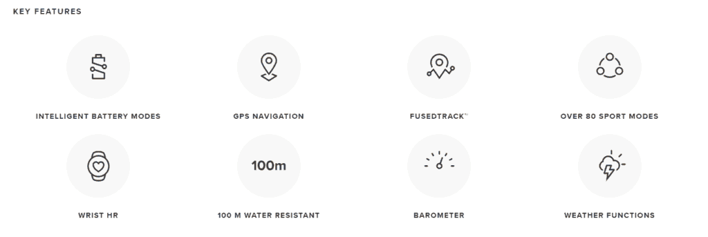 Its battery and fused track features make it very unique compared to the Garmin options and if you are the sort of athlete that needs these kinds of features, this is about the best option you have. For example, the Garmin Fenix 5X Plus which costs an eye-watering £749.99 has a GPS tracking battery life of 32-hours, or 13 with running. There is an extended life mode called UltraTrac but that can only do 70-hours.