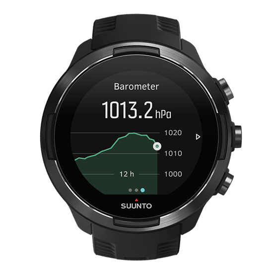 • Three predefined battery modes – Performance, Endurance and Ultra – deliver from 25 hours to up to 120 hours of recording time with GPS tracking on. Suunto 9 uses smart reminders based on your activity history to help ensure you are fully charged for your next outing. If the watch notices you are running low on battery during an exercise, it will automatically suggest changing to a different battery mode.
