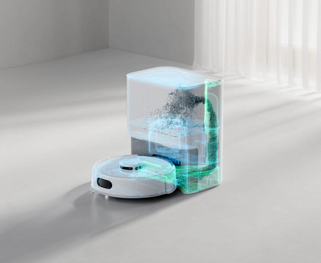The station’s design is relatively compact, measuring 261 × 210 × 323 mm. This smaller footprint compared to some competitors’ auto-empty stations is an advantage for homes where space is at a premium.
