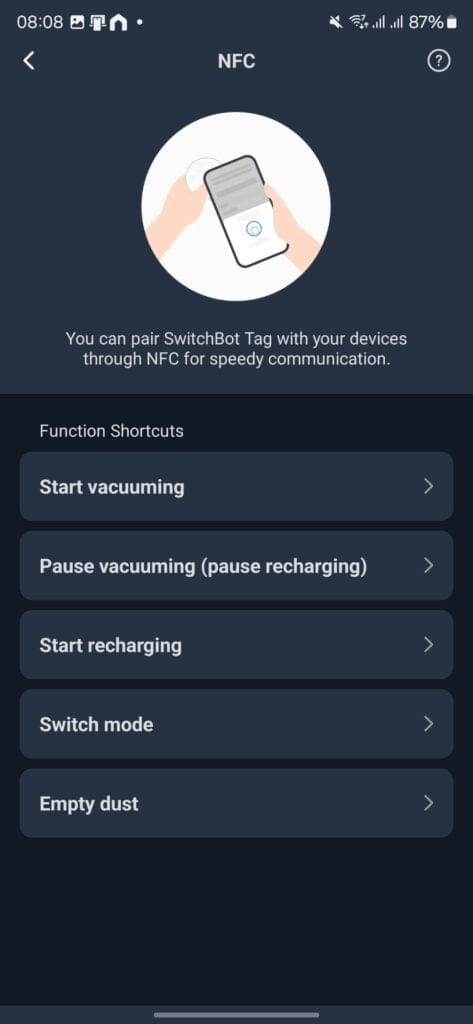 Getting it to work with Matter is similar to the SwitchBot Universal Remote and other Matter-compatible SwitchBot devices. You need to go into the hub settings and then manually add the robot vacuum as one of the secondary devices within the Matter setup screen.