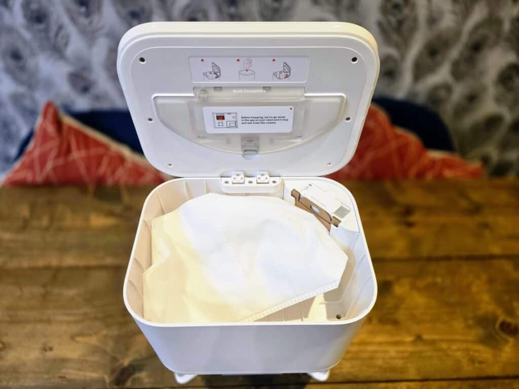 Despite the robot’s compact size, the station houses a large 4L dust bag which is the largest capacity auto-empty station I have used for a robot vacuum. This capacity allows for up to 90 days of use before the bag needs to be replaced, significantly reducing the frequency of maintenance.
