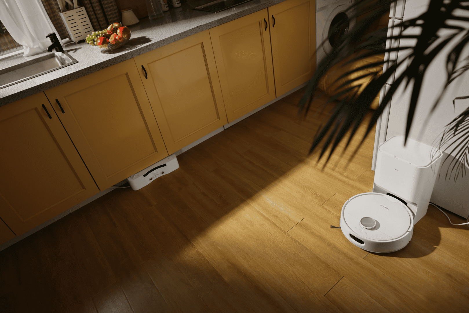 - Self-vacuuming and mopping