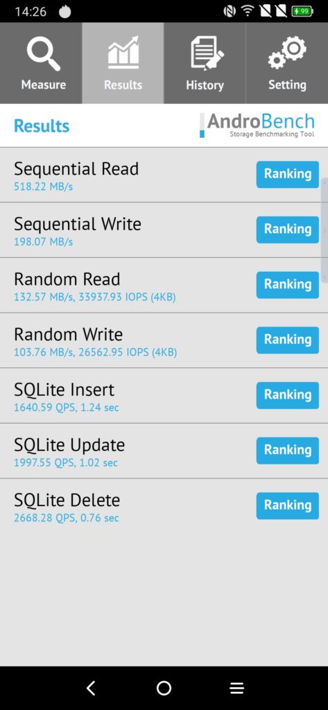 In Geekbench the phone performs quite well scoring an admirable 500 for the single-core which puts it a touch behind the Mediatek Helio G90T and about 10% off the Snapdragon 720G. It then achieves 1500 for the multi-core, again a bit behind both the G90T and SD720G.