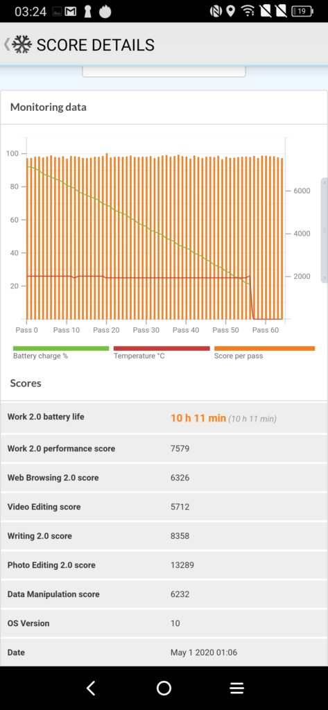 The 4,500 mAh battery combined with low powered chipset and relatively small 6.47 inch 2340×1080 display allows this phone to have a superb battery life. The synthetic PC Mark 2.0 battery test shows 10h 11mins before the battery hits 20% which is a bit less than some phones, but from my experience, you should easily get two days battery from this. You would have to use it very heavily to struggle to get a full day out of it.