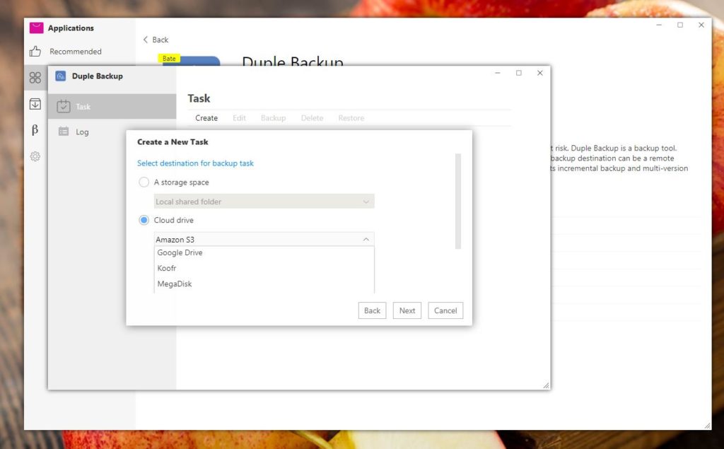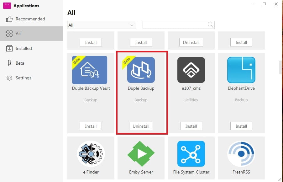 Step 1: Install Duple Backup on TOS Application and run application