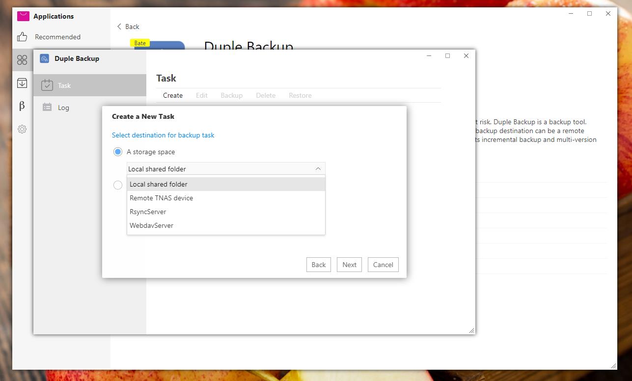 Step 1: Install Duple Backup on TOS Application and run application