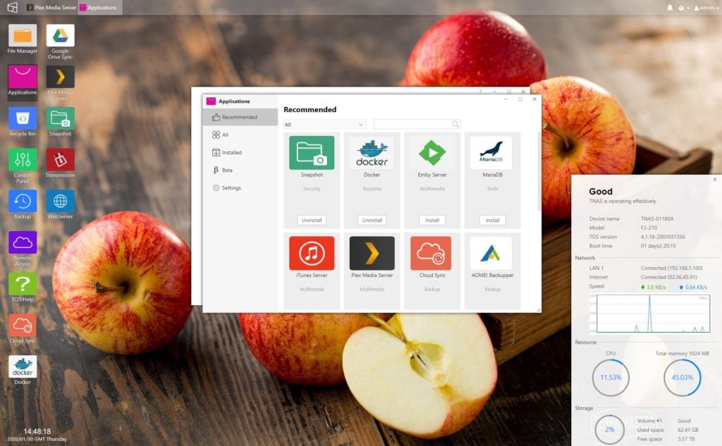 While not as extensive as the more expensive Synology systems running DSM, the TOS system offers everything most people want from a NAS. This includes: