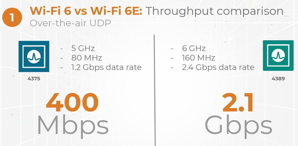 Broadcom state the speeds this is capable is 2.4Gbps theoretical and real-life 2.1Gbps as well as a 2x latency benefit. Currently, a PC 2×2 5Ghz Wi-Fi 6 client will connect at about 2.4Gbps and I have experienced real-life transfer speeds of 2.4Gbps so this should go much higher.