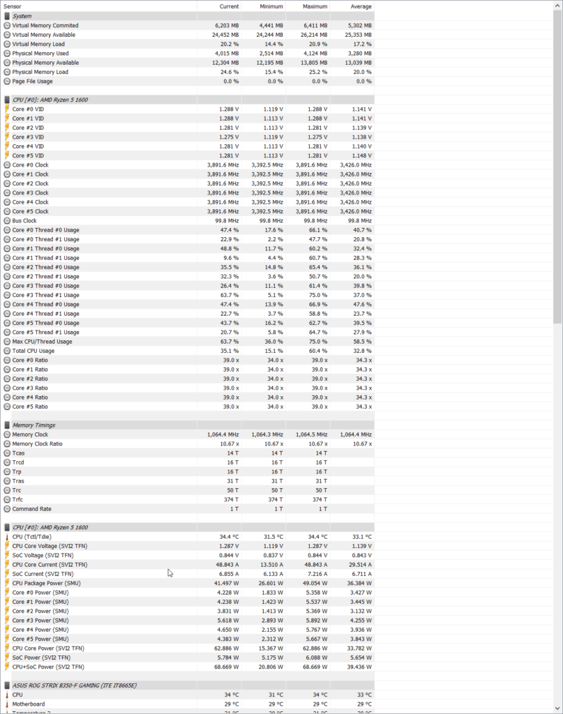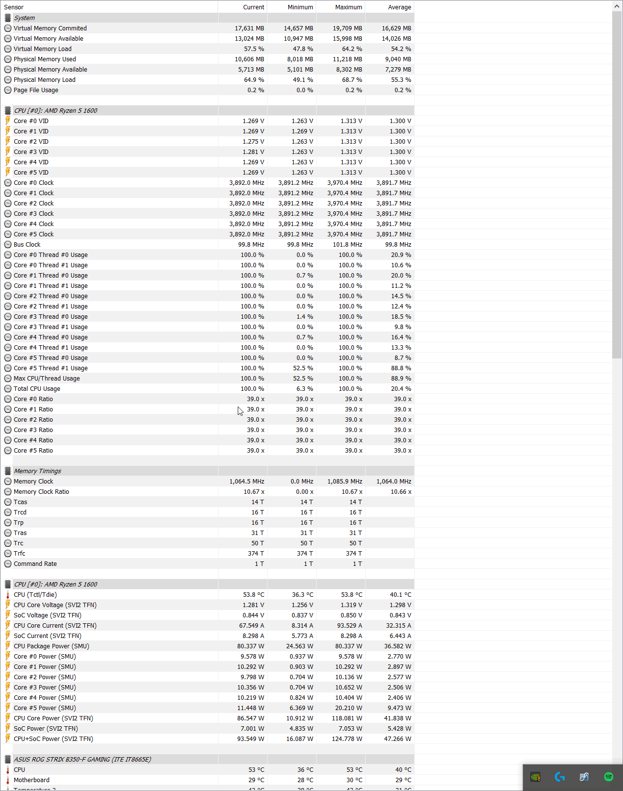 While I don’t do a lot of overclocking, I did play with AMD Ryzen Master Suite to push my CPU a little further. In the past, I used the BIOS for overclocking, but since getting the Ryzen CPU and based on my low overclocks I have found Master Suite to be a lot more user-friendly and quite capable of achieving what I want. Using this software worked my clock speed up to a moderate 3.9Ghz. HWinfo reported the average clock as 3.891Ghz