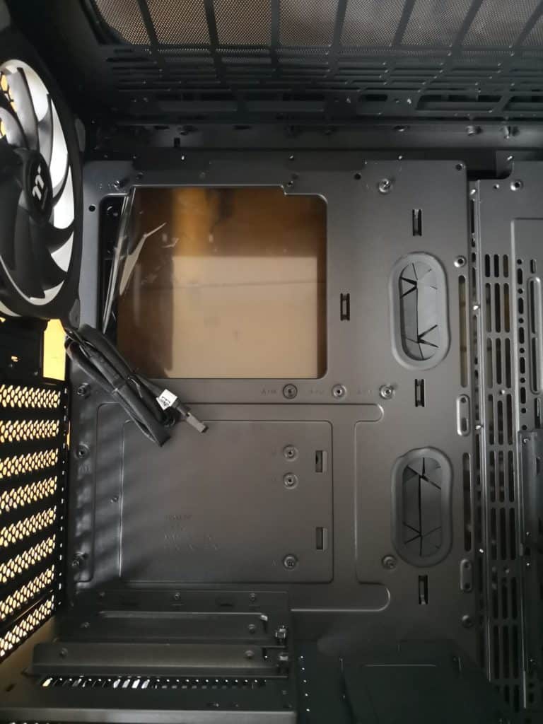 The removable top panel allowed me to fit the Floe Riing with ease, and the mount this sits on is also removable allowing you attach the radiator to the mount then install the mount after.