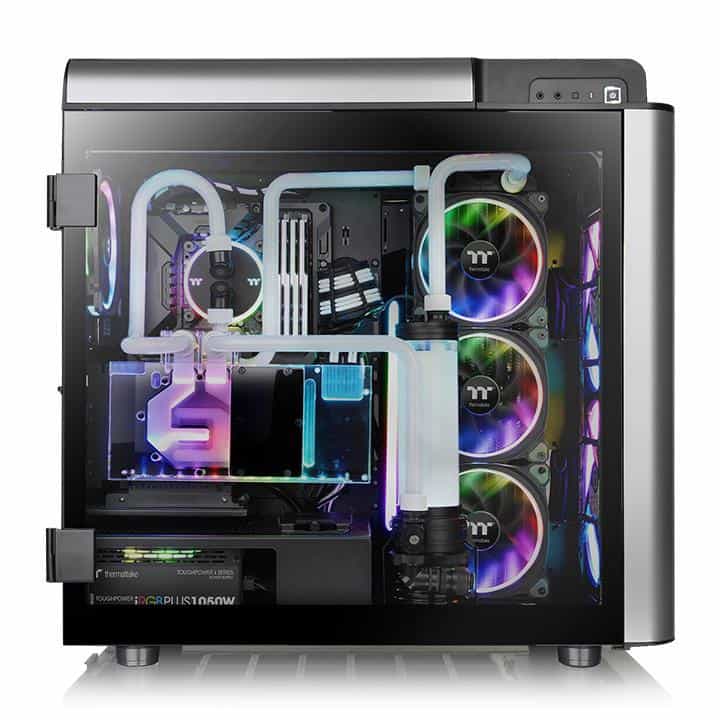 It comes preinstalled with two Riing Plus 20 RGB in the front & one Riing Plus 14 RGB fans in the rear. These RGB Plus fans are custom-designed to work with AI Voice Control software, as well as with Amazon Alexa. The lighting effects can also be synchronized with Razer’s RGB products via Razer Chroma software.