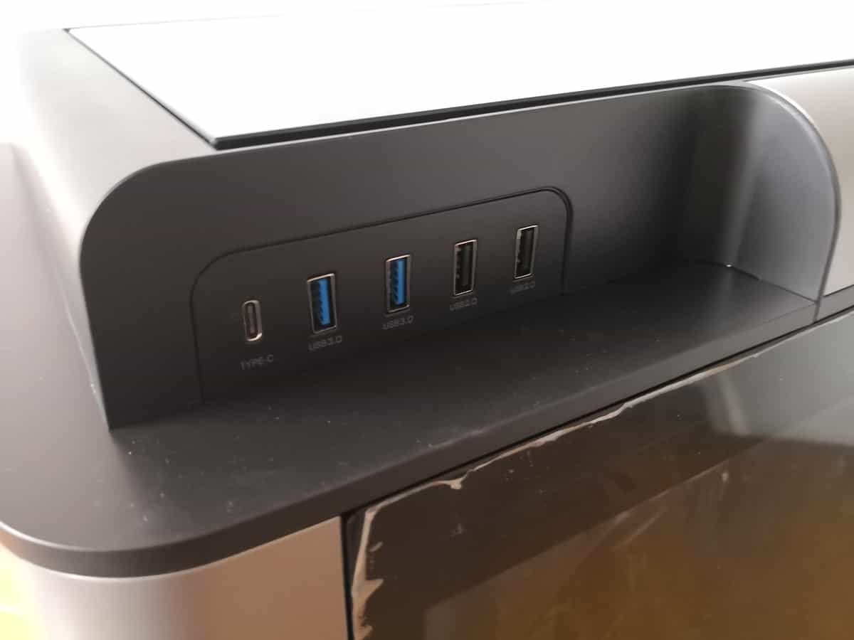 The I/O on the top panel include USB 3.0 x 2, USB 2.0 x 2, HD Audio x 1, Type-C x 1.