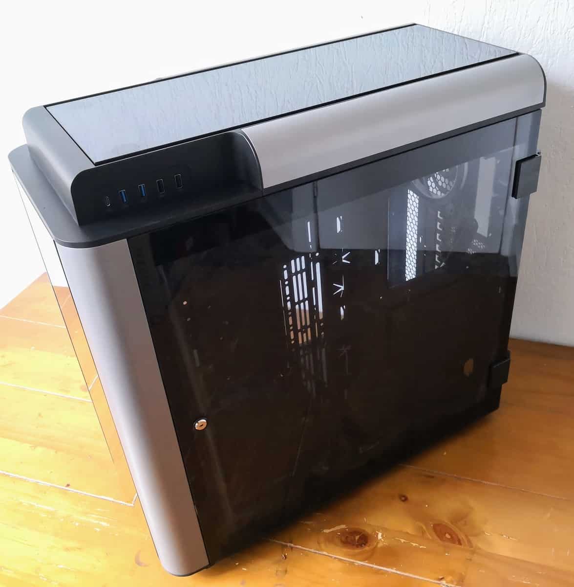 This case weighs a weighty 20.1KG and is massive sitting at over half a metre high and deep. Everything about it is ultra-premium, the four tempered glass panels are 5mm thick with the side panels on a hinge that are shut with both magnets as well as lock and key.