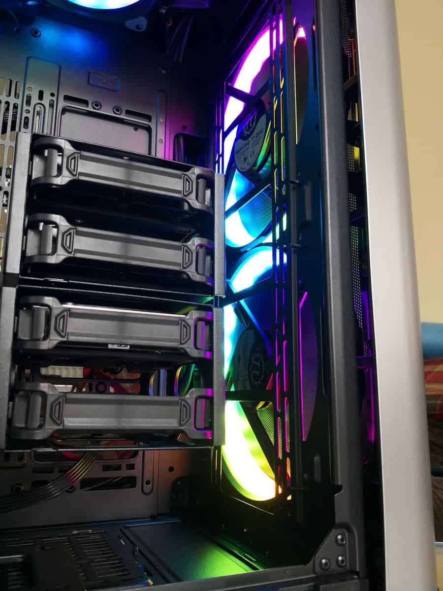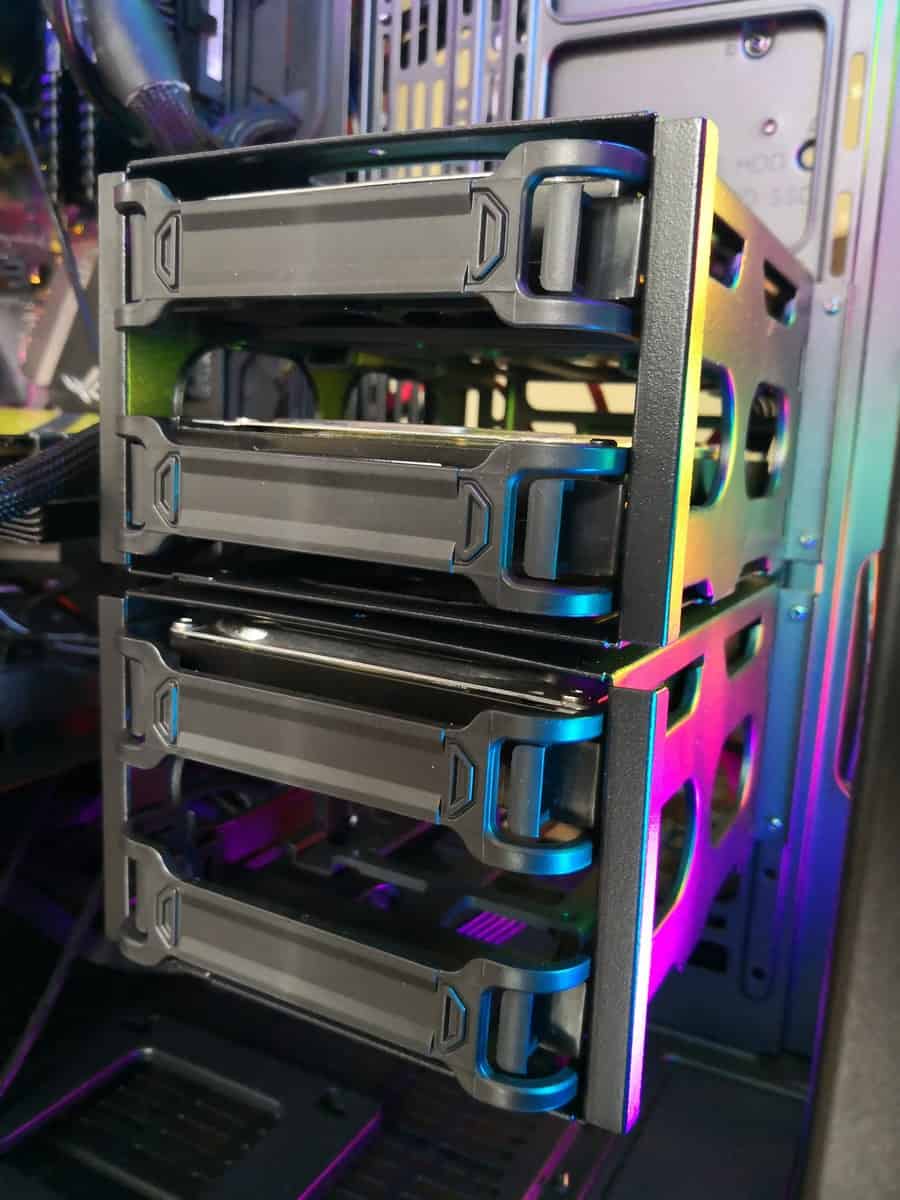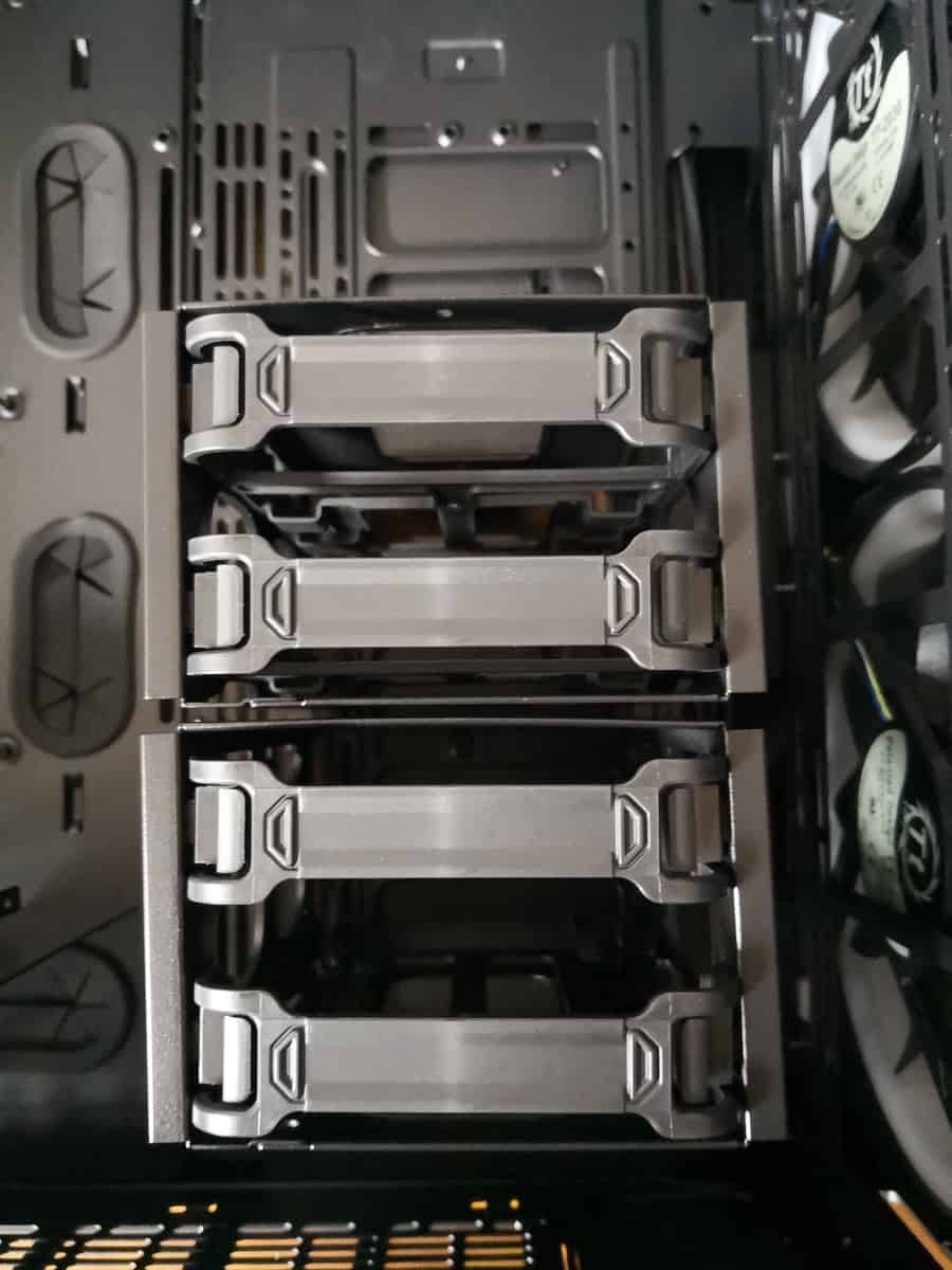 I built my working PC into this, so I have an excessive 3×3.5” drives with 2xSSDs. I should consolidate into larger drives, but I like the separation of my work data from games and personal data. Therefore having four drive cages was a big plus for me, they are becoming increasingly rare nowadays.