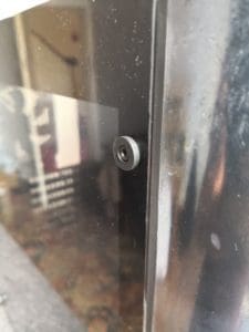 The tempered glass panel is held in place with 4 thumb screws and protected by some rubber grommets.