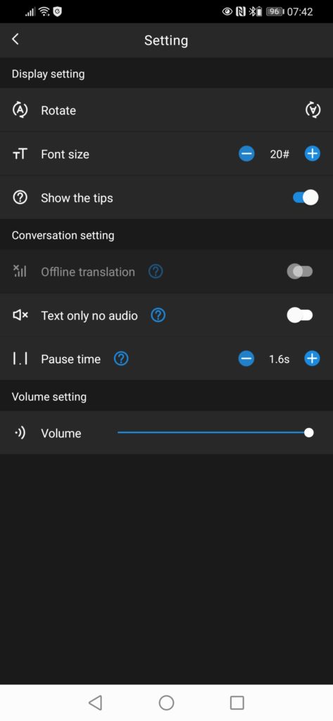 Of course, for brief encounters with strangers, you don’t have to give them an earbud, you can provide them with the text translation on the phone. The way the app deals with the orientation of the text, it should be easier to converse with someone in a shop, for example.