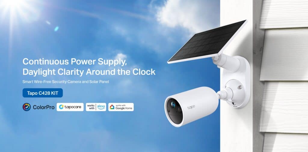 The flagship Tapo C428 security camera kit utilises TP-Link’s proprietary ColorProTM Night Vision technology. This allows for full-colour imaging in ultra low-light scenes, with high saturation and low noise. The C428 also captures 2K QHD video and comes bundled with a solar panel for continuous charging.